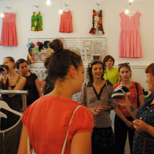 One of the designers working in Poplin, an ecological clothing store, showed us a collection of vegan shoes and explained the aspects of the shop’s environmental and social responsibility.